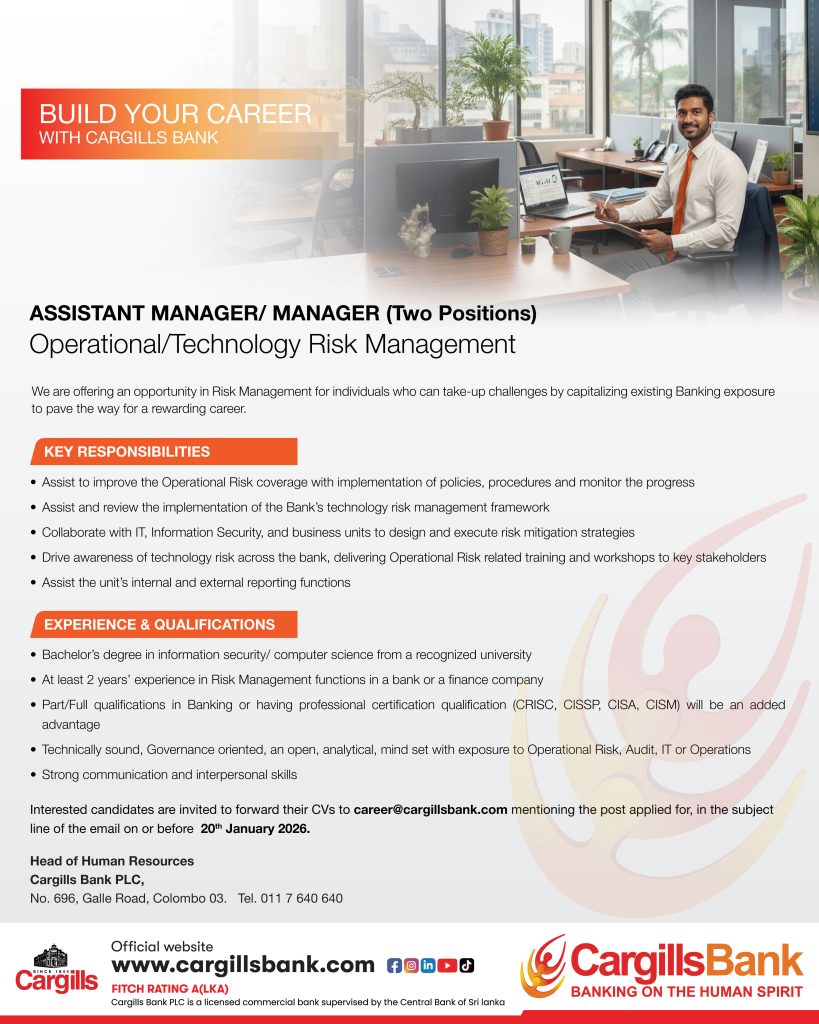 Assistant Manager / Manager – Operational / Technology Risk Management