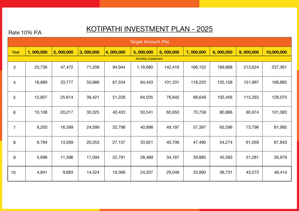 The plan is designed to achieve a maturity value between LKR 1,000,000 and LKR 10,000,000